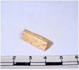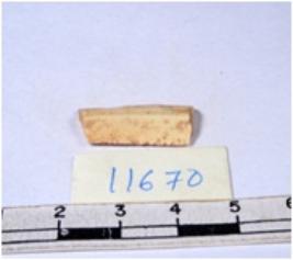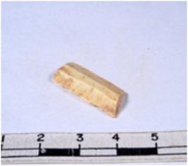 | Description / विवरण | A fragment of a rectangular shaped chert blade showing dorsal sides with sharp edges having smooth surface and triangular section. |