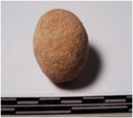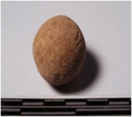 | Description / विवरण | A terracotta round in shaped sling ball of smooth surface. |