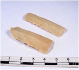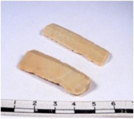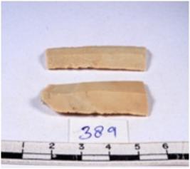 | Description / विवरण | A fragment of a rectangular shaped chert blade showing dorsal sides with sharp edges having smooth surface and triangular section. |
