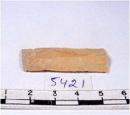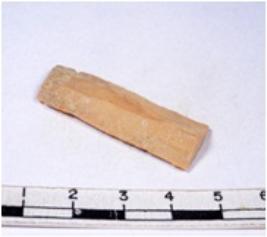 | Description / विवरण | A fragment of a rectangular shaped chert blade showing dorsal sides with sharp cutting edges having smooth surface and triangular section. |