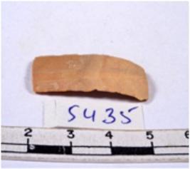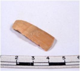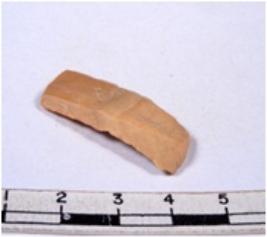 | Description / विवरण | A fragment of a rectangular shaped chert blade showing dorsal sides with sharp cutting edges having smooth surface and triangular section. |