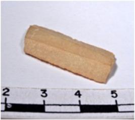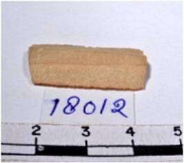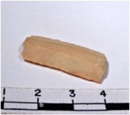| Description / विवरण | A fragment of a rectangular shaped chert blade showing flat sides with sharp cutting edges having smooth surface and uneven section. |
