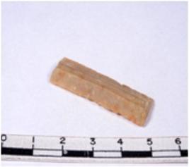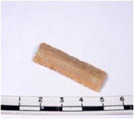 | Description / विवरण | A fragment of a rectangular shaped chert blade showing dorsal sides with sharp cutting edges having smooth surface and triangular section. |