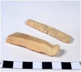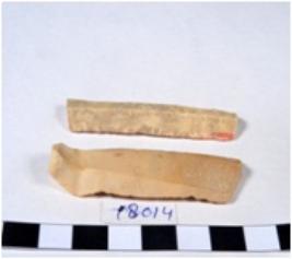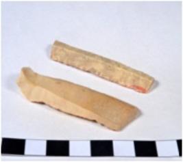 | Description / विवरण | A fragment of a rectangular shaped chert blade showing dorsal sides with sharp cutting edges having smooth surface and triangular section. |