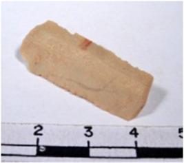 | Description / विवरण | A fragment of a rectangular shaped chert blade showing parallel sides with sharp cutting edges having smooth surface and triangular section. |