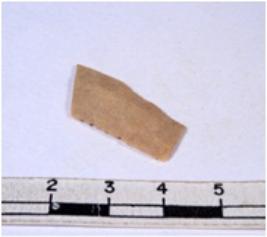 | Description / विवरण | A fragment of a rectangular shaped chert blade showing dorsal sides with sharp cutting edges having smooth surface and triangular section. |