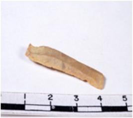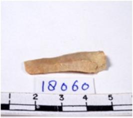 | Description / विवरण | A fragment of a rectangular shaped chert blade showing parallel sides with sharp edges having smooth surface and triangular section. |