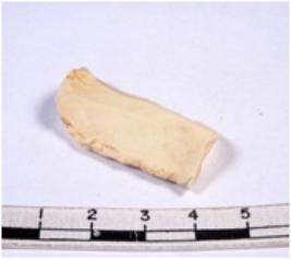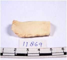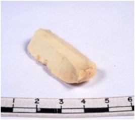 | Description / विवरण | A fragment of a rectangular shaped chert blade showing dorsal sides with sharp cutting edges having smooth surface and triangular section. |