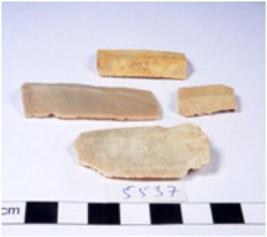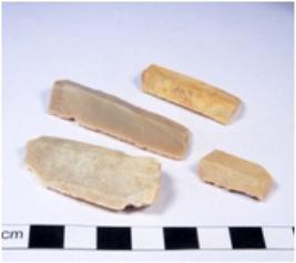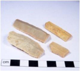 | Description / विवरण | A fragment of a rectangular shaped chert blade showing dorsal sides with sharp cutting edges having smooth surface and triangular section. |