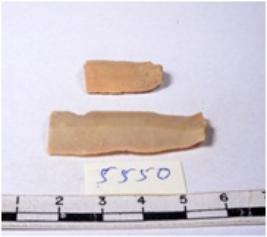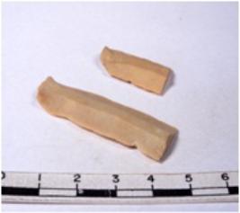 | Description / विवरण | A fragment of a rectangular shaped chert blade showing dorsal sides with sharp edges having smooth surface and triangular section. |