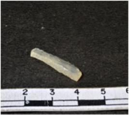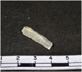 | Description / विवरण | A fragment of a rectangular shaped chalcedony blade showing dorsal sides with sharp cutting edges having smooth surface and triangular section. |