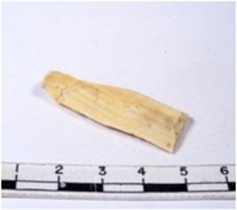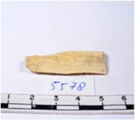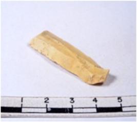 | Description / विवरण | A fragment of a rectangular shaped chert blade showing dorsal sides with sharp edges having smooth surface and triangular section. |