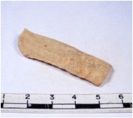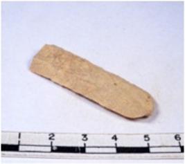 | Description / विवरण | A fragment of a rectangular shaped chert blade showing parallel sides with sharp cutting edges having smooth surface and uneven section. |