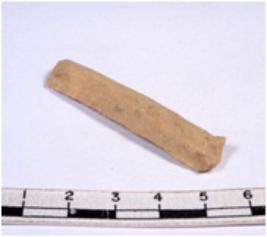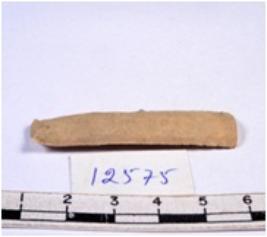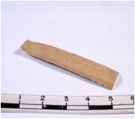 | Description / विवरण | A fragment of a rectangular shaped chert blade showing dorsal sides with sharp cutting edges having smooth surface and triangular section. |