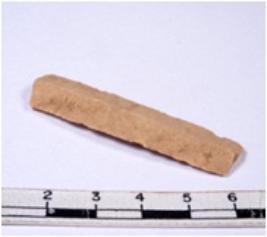 | Description / विवरण | A fragment of a rectangular shaped chert blade showing dorsal sides with sharp edges having smooth surface and triangular section. |