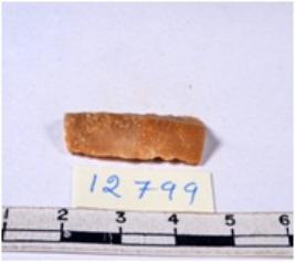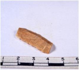 | Description / विवरण | A fragment of a rectangular shaped chert blade showing dorsal sides with sharp edges having smooth surface and triangular section. |