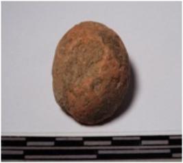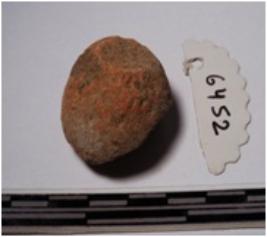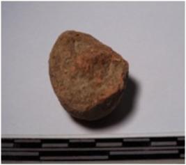 | Description / विवरण | A fragment of a terracotta round in shaped sling ball, circular in section of rough surface.. |