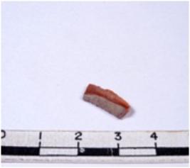 | Description / विवरण | A fragment of a rectangular shaped chert blade showing dorsal sides with sharp edges having smooth surface and triangular section. |