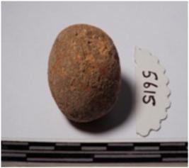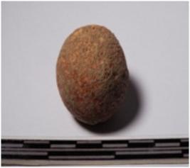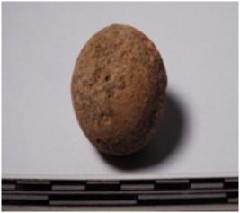 | Description / विवरण | A terracotta small sling ball round in shape of smooth surface. |