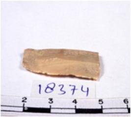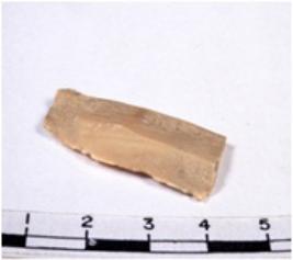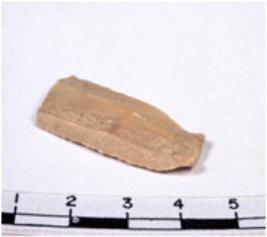 | Description / विवरण | A fragment of a rectangular shaped chert blade showing dorsal sides with sharp cutting edges having smooth surface and triangular section. |