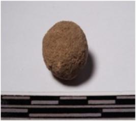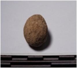 | Description / विवरण | A terracotta round in shaped sling ball, circular in section of rough surface. |