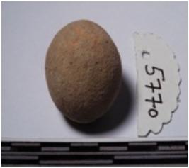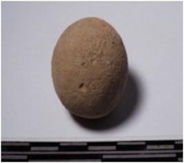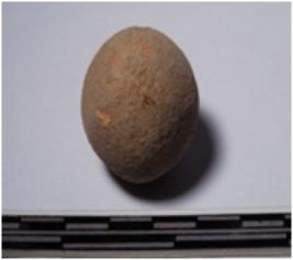 | Description / विवरण | A terracotta sling ball round in shape of smooth surface. |
