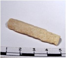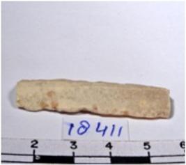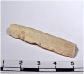 | Description / विवरण | A fragment of a rectangular shaped blade showing dorsal sides with sharp cutting edges having smooth surface and triangular section. |