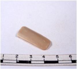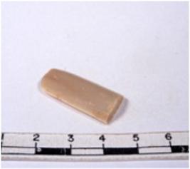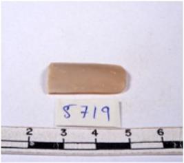 | Description / विवरण | A fragment of a rectangular shaped chert blade showing dorsal sides with sharp edges having smooth surface and triangular section. |