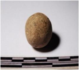 | Description / विवरण | A terracotta round in shaped sling ball, circular in section of smooth surface. |