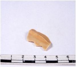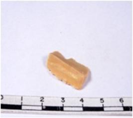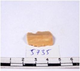 | Description / विवरण | A fragment of a rectangular shaped chert blade showing dorsal sides with sharp cutting edges having smooth surface and triangular section. |