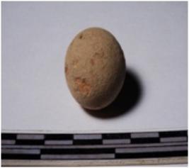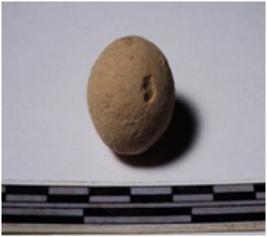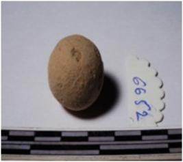 | Description / विवरण | A terracotta sling ball round in shape of smooth surface. |