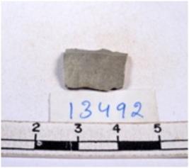 | Description / विवरण | A fragment of a rectangular shaped chert blade showing dorsal sides with sharp cutting edges having smooth surface and triangular section. |
