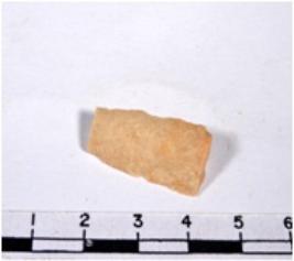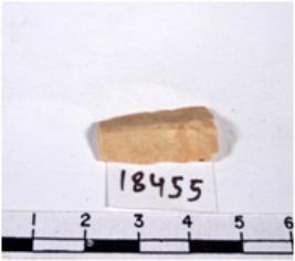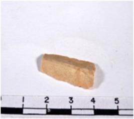 | Description / विवरण | A fragment of a rectangular shaped chert blade showing dorsal sides with rough cutting edges having smooth surface and triangular in section. |