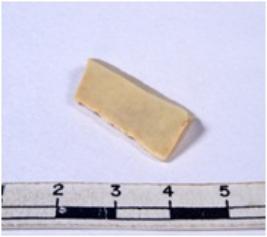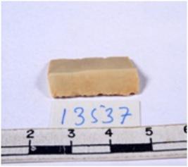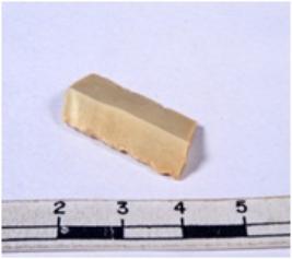| Description / विवरण | A fragment of a rectangular shaped chert blade showing dorsal sides with sharp edges having smooth surface and triangular section. |