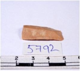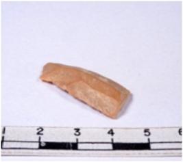 | Description / विवरण | A fragment of a rectangular shaped chert blade showing dorsal sides with sharp cutting edges having smooth surface and triangular section. |