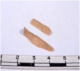 | Description / विवरण | A fragment of a rectangular shaped chert blade showing dorsal sides with sharp edges having smooth surface and triangular section. |