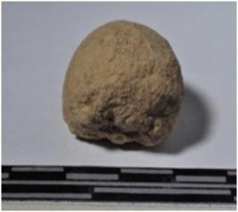 | Description / विवरण | A fragment of a small terracotta round in shaped sling ball of smooth surface. |