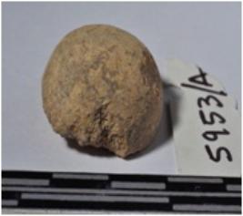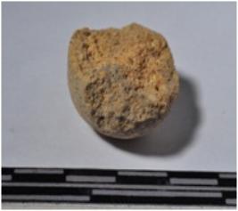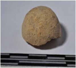 | Description / विवरण | A fragment of a terracotta round shaped sling ball of smooth surface. |