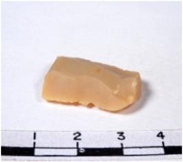 | Description / विवरण | A fragment of a rectangular shaped chert blade showing dorsal sides with sharp cutting edges having smooth surface and uneven section. |