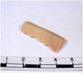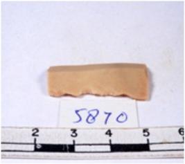 | Description / विवरण | A fragment of a rectangular shaped chert blade showing dorsal sides with sharp cutting edges having smooth surface and triangular section. |