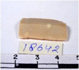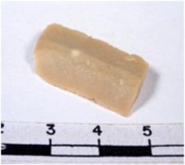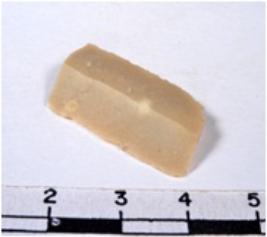 | Description / विवरण | A fragment of a rectangular shaped chert blade showing dorsal sides with sharp cutting edges having smooth surface and triangular section. |