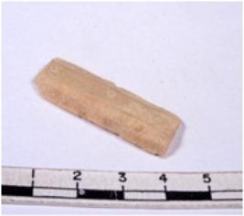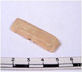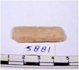 | Description / विवरण | A fragment of a rectangular shaped chert blade showing dorsal sides with sharp cutting edges having smooth surface and triangular section. |