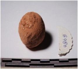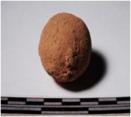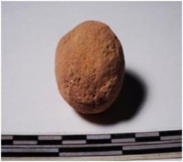 | Description / विवरण | A terracotta sling ball round in shape information of smooth surface. |