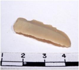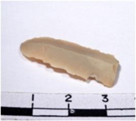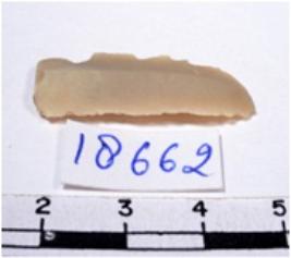 | Description / विवरण | A fragment of rectangular shaped chert blade showing dorsal side with sharp cutting edges having smooth surface and triangular section. |