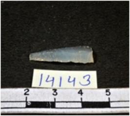 | Description / विवरण | A fragment of a rectangular shaped chalcedony blade showing dorsal sides with sharp cutting edges having smooth surface and triangular section. |