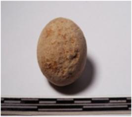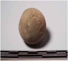 | Description / विवरण | A terracotta sling ball round in shape of smooth surface. |