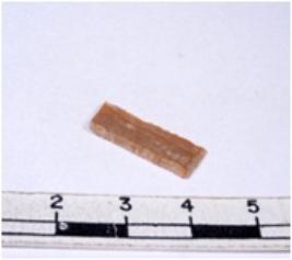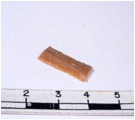 | Description / विवरण | A fragment of a rectangular shaped chert blade showing parallel sides with sharp cutting edges having smooth surface and triangular section. |