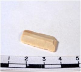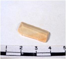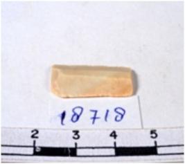 | Description / विवरण | A fragment of a rectangular shaped chert blade showing dorsal sides with sharp cutting edges having smooth surface and triangular section. |