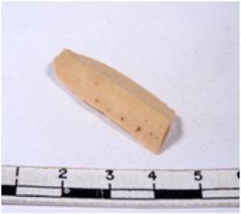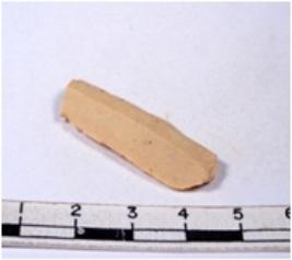 | Description / विवरण | A fragment of a rectangular shaped chert blade showing dorsal sides with sharp edges having smooth surface and triangular section. |