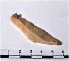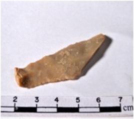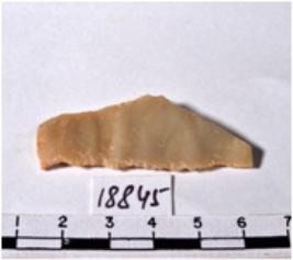 | Description / विवरण | A fragment of a rectangular shaped chert blade showing dorsal sides with sharp cutting edges having smooth surface and uneven section. |